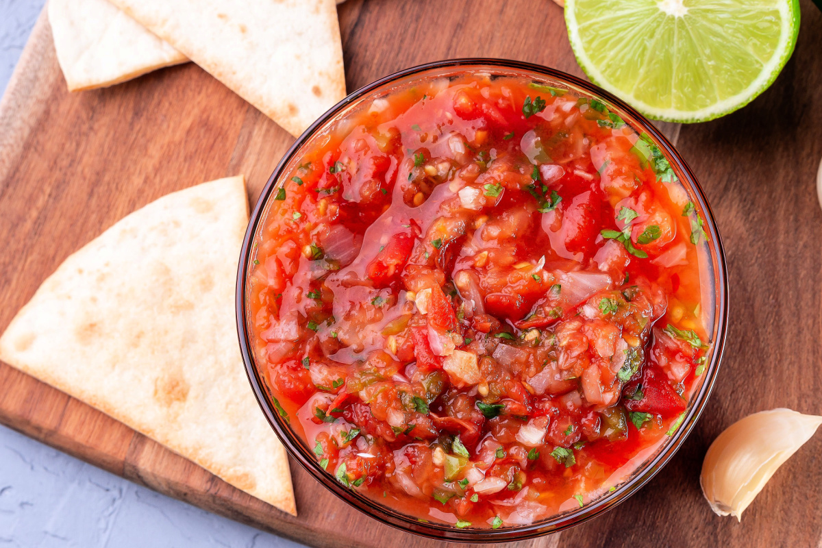 Scoop 1/2 can diced tomatoes and set aside for another recipe, like Bodaciously Bueno Breakfast Quesadillas (see recipe). Pour the remaining 1/2 can diced tomatoes (including juice!) into your blender or food processor. Measure 1/2 teaspoon salt, 1 teaspoon sugar, and 1/8 teaspoon cumin and add to the tomatoes. Blend until smooth! Use as a dip with tortilla chips or top Bodaciously Bueno Breakfast Quesadillas with your homemade blender salsa.